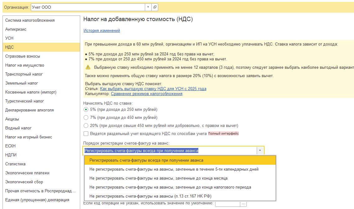 Регистрация счетов-фактур на аванс