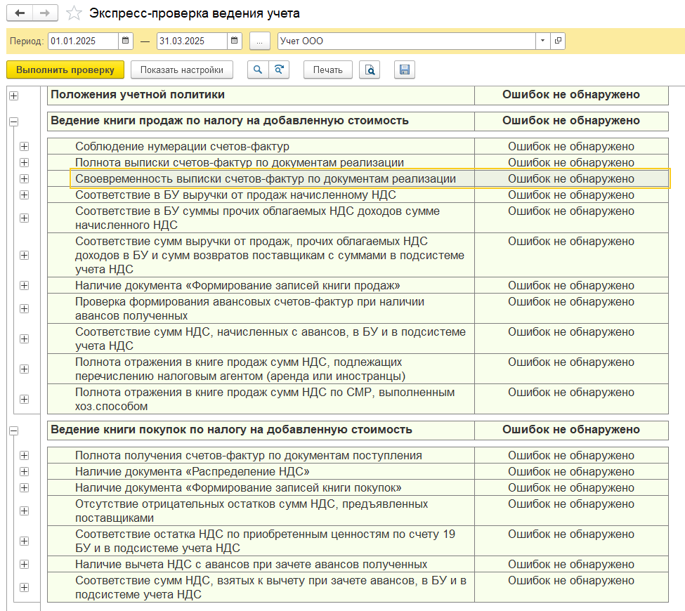 Экспресс-проверка ведения учета проверяет правильность ведения книги покупок и книги продаж.