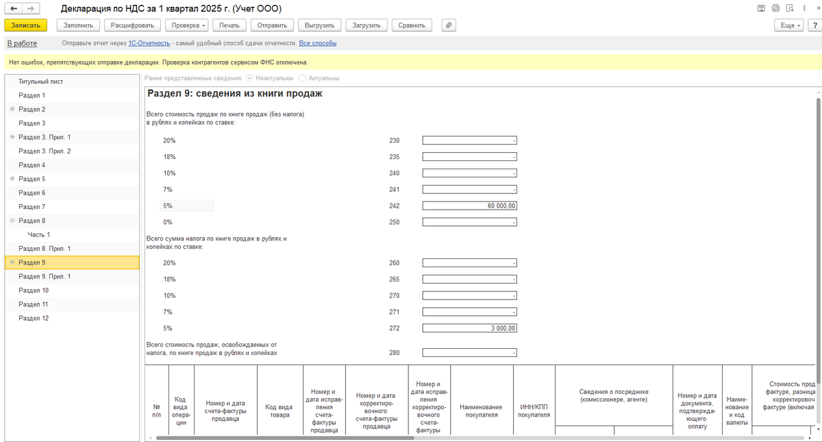 Раздел 9 Сведения из книги продаж