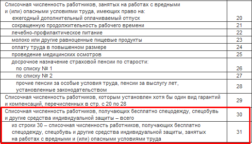 Строки 30-31 заполняются данными о нормах выдачи СИЗ для рабочего места работника.