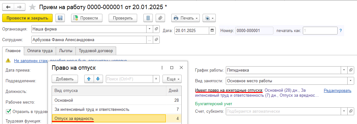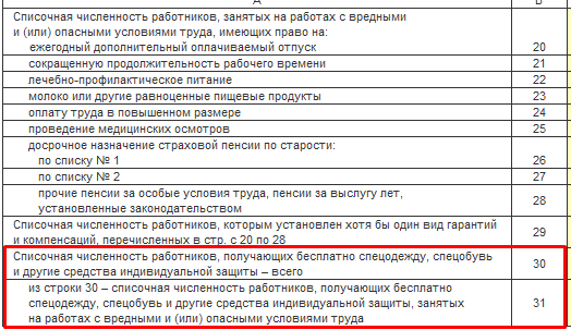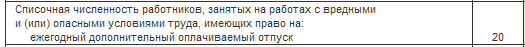Строка 20 заполняется по данным из кадровых приказов о праве на дополнительный отпуск за вредность.