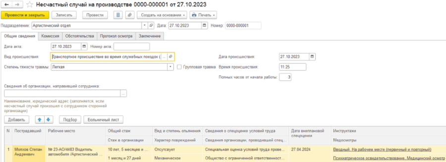 Оформление несчастного случая и принятых мер по устранению в 1С:ЗКГУ КОРП