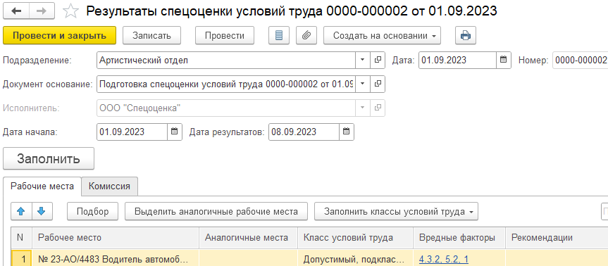 Основой всей подсистемы охраны труда в 1С:ЗКГУ является документ "Результат специальной оценки условий труда". Специальная оценка производится для рабочего места, а не для штатной позиции.