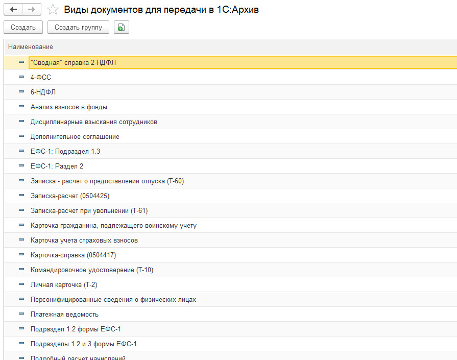 Примеры документов, для которых востребована возможность передачи в 1С:Архив: