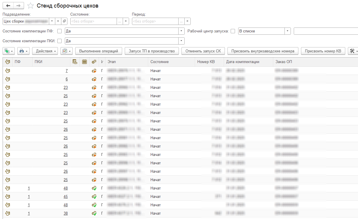 Для сборочного производства используется типовое рабочее место "Выполнение этапов", которое, по требованию заказчика, переименовали в "Стенд сборочных цехов". Работа в нем соответствует типовому бизнес-процессу в системе: сюда попадают распоряжения на сборку деталей и иные операции, которые распределяются локальным диспетчером.