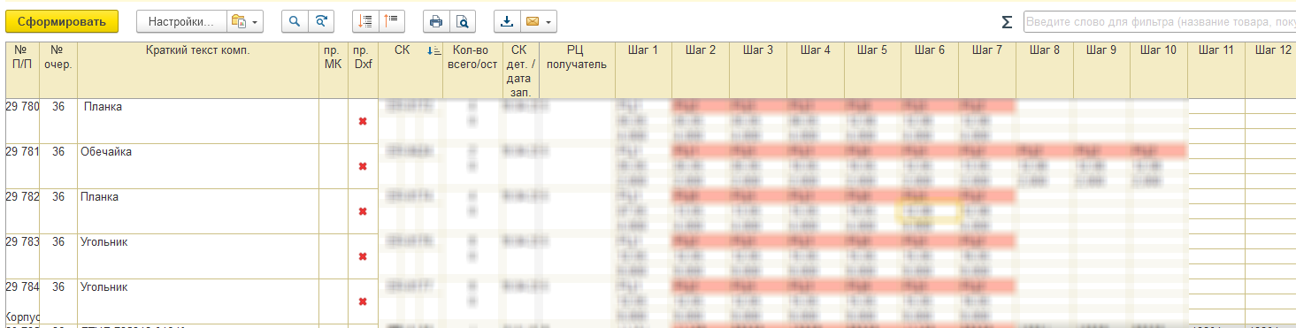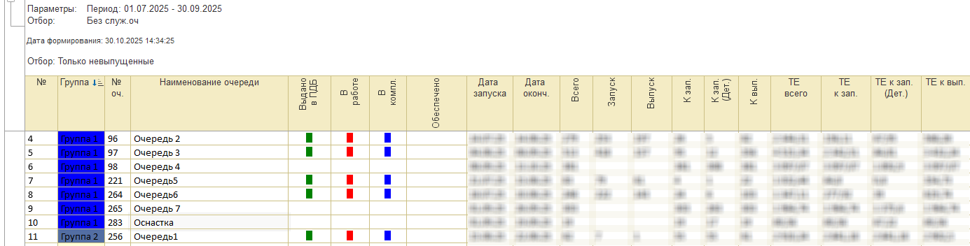 - Отчет по сопроводительным картам, в котором указывается, на каком этапе изготовления находится каждая деталь внутри очереди.