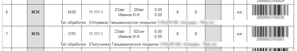 При возврате из МЗК сканируется второй штрихкод, и система фиксирует, что детали вернулись на производство.