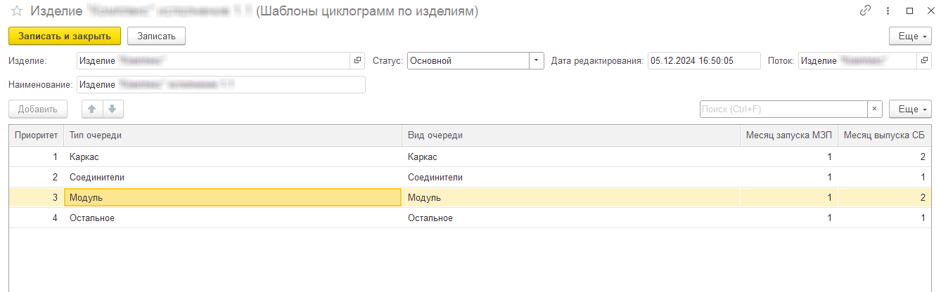 В "Плане производства" по кнопке "Рассчитать даты по циклограмме" можно разбить всё это количество полуфабрикатов и увидеть даты запуска и выпуска. Чтобы дальше работать с этой информацией, полуфабрикатам присваивается тип очереди.