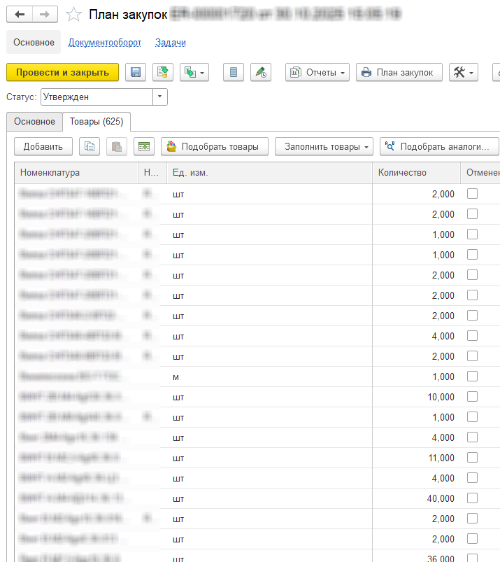 При этом система учитывает вычитание: если в плане производства были исключены какие-то покупные позиции, они автоматически исключаются и из плана закупок;