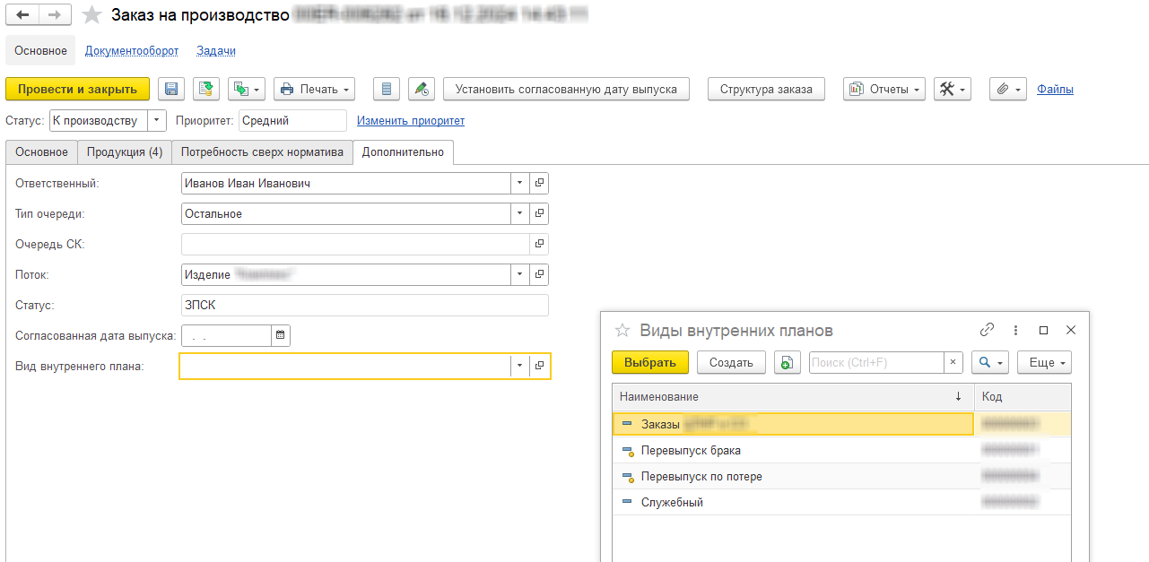 Далее, когда план производства создан, согласован и утвержден, запускается производство определенной партии. В 1С:ERP реализована возможность формирования заказов на производство по блокам и очередям, где заказ – это распоряжение непосредственно на производство о том, что нам нужно изготовить конкретную деталь или сборочную единицу.