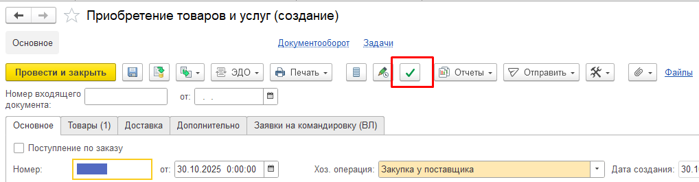 Для складской службы используется типовое рабочее место приемки товаров, которое было дополнено рядом функций для удобства пользователей. При выполнении приемки кладовщик может сразу сформировать накладную по принятым позициям – без лишних переходов. Это позволяет выполнять весь процесс в одном окне и снижает количество ошибок, связанных с переключением между разделами системы.
