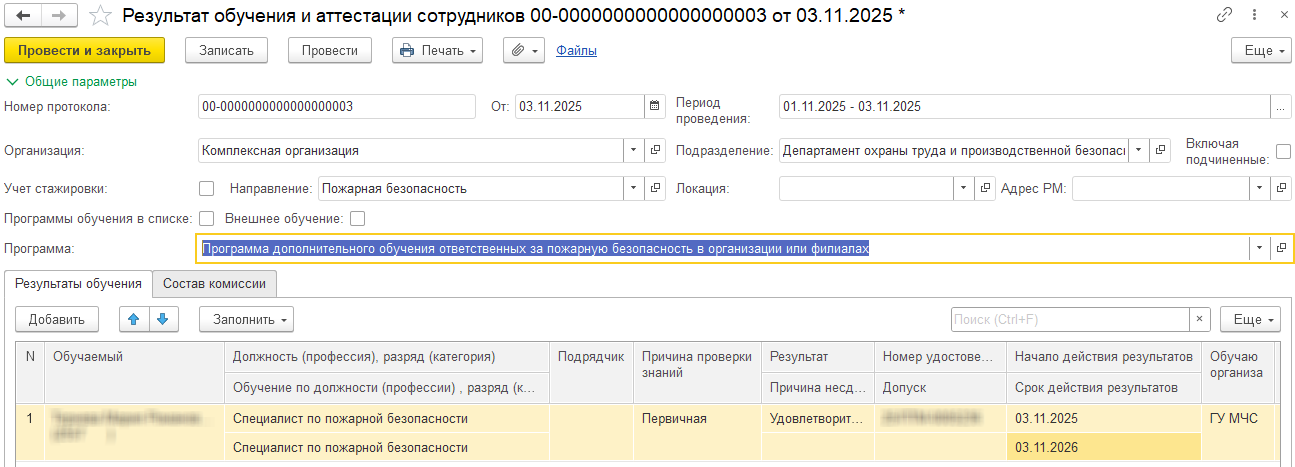 Факт прохождения обучения по каждой из положенных программ регистрируется документом "Результат обучения и аттестации сотрудников".