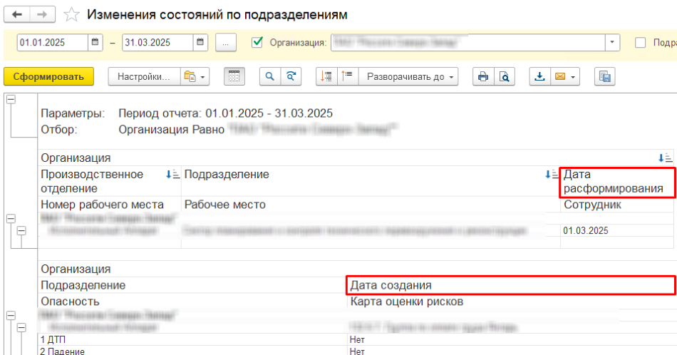 Вывод открытых и закрытых подразделений в одном окне также позволяет получить информацию о том, была ли выполнена техническая операция или действительно произошло изменение структуры организации.