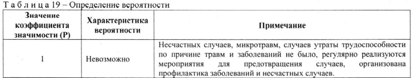 Расчет оценки рисков осуществляется по значениям шкал вероятности, частоты и тяжести. Значение каждой из шкал определяется по количеству и последствиям несчастных случаев, микротравм и профессиональных заболеваний за последние 10 лет.