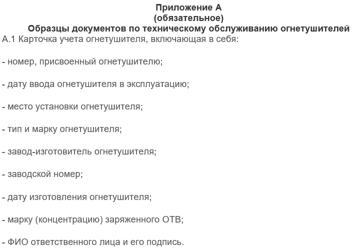 Учет огнетушителей по ГОСТ Р 59641-2021. Приложение А