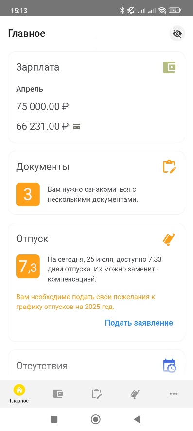 - У сервиса 1С:Кабинет сотрудника простой и понятный интерфейс для сотрудников
