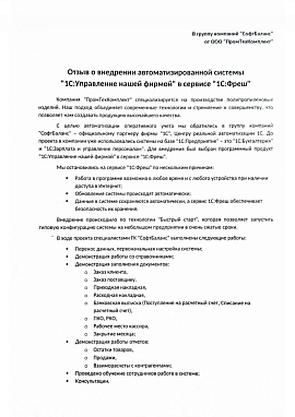 Отзыв о сервисе 1С:Фреш и обслуживании в ГК СофтБаланс