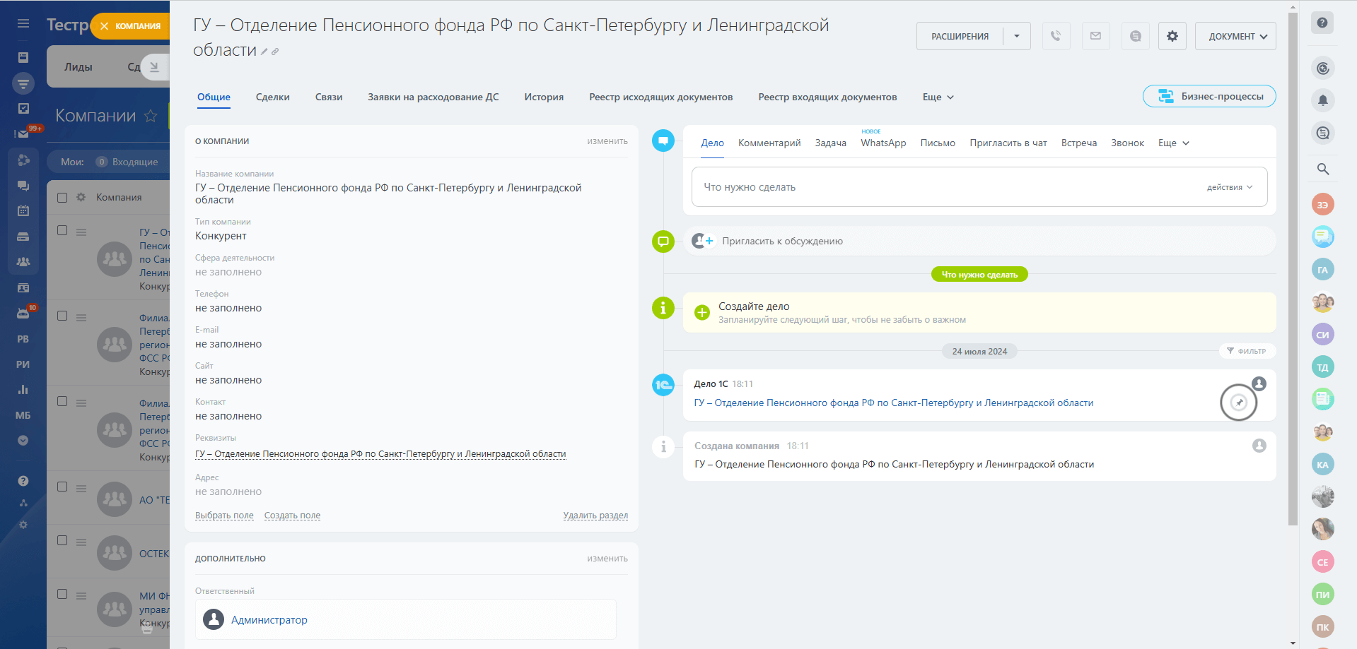 Рис. 8 Карточка компании: