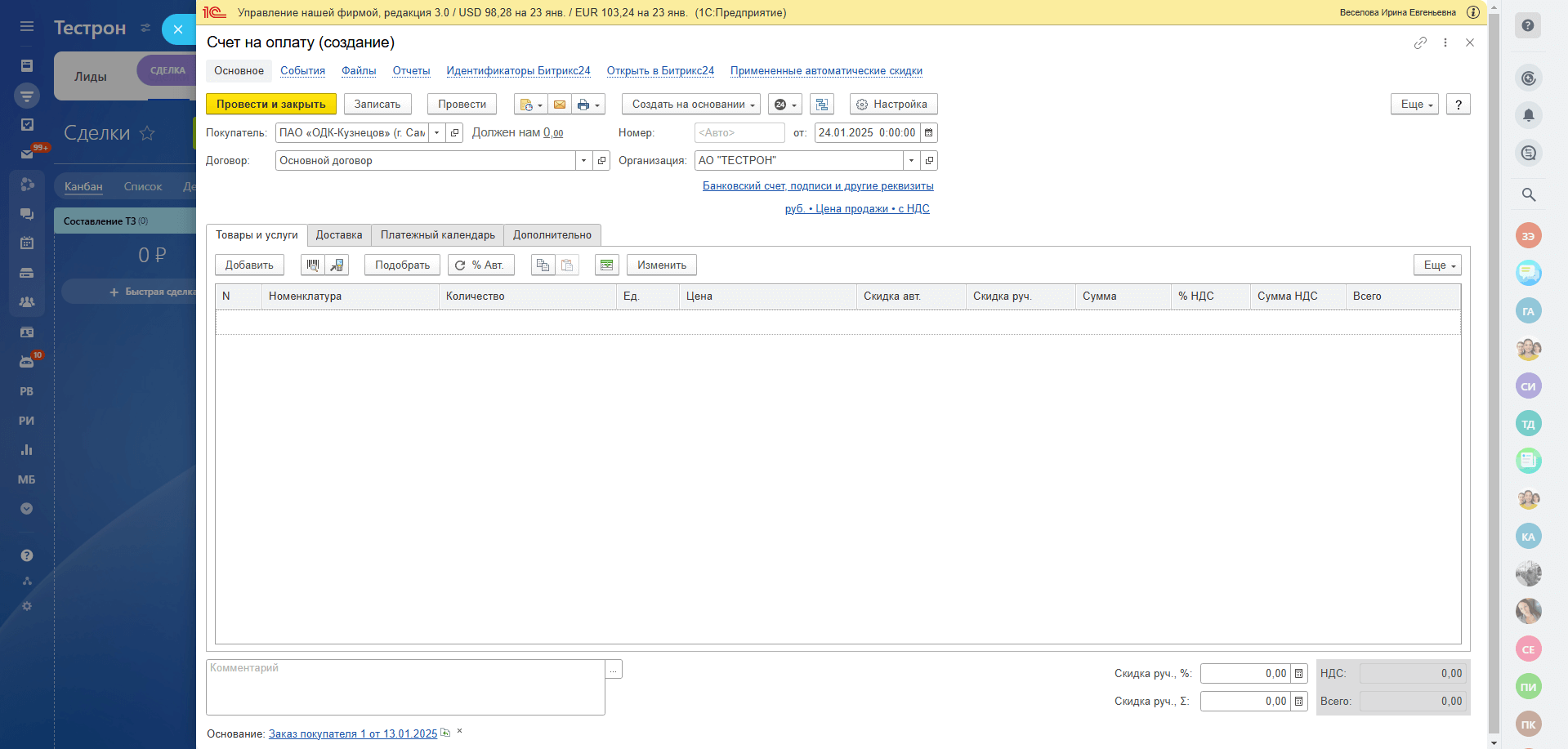 Практически в каждом проекте работа с продажами в блоке CRM не может обойтись без интеграции с 1С. Фоновая синхронизация была настроена через типовой модуль обмена по следующим объектам: заказы, контрагенты и контактные лица, номенклатура, заявки на расходование денежных средств (в Битрикс24 они реализованы через смарт-процессы). Вся синхронизация двусторонняя, за исключением номенклатуры, она как и полагается, создается только в 1С и после выгружается в Битрикс24. А Бэк-офис стал незаменимым инструментом, который полностью закрыл вопрос использования всего в одном окне, больше менеджеры не заходят в 1С, вся информация может открываться сразу в Битрикс24 в конкретном элементе.