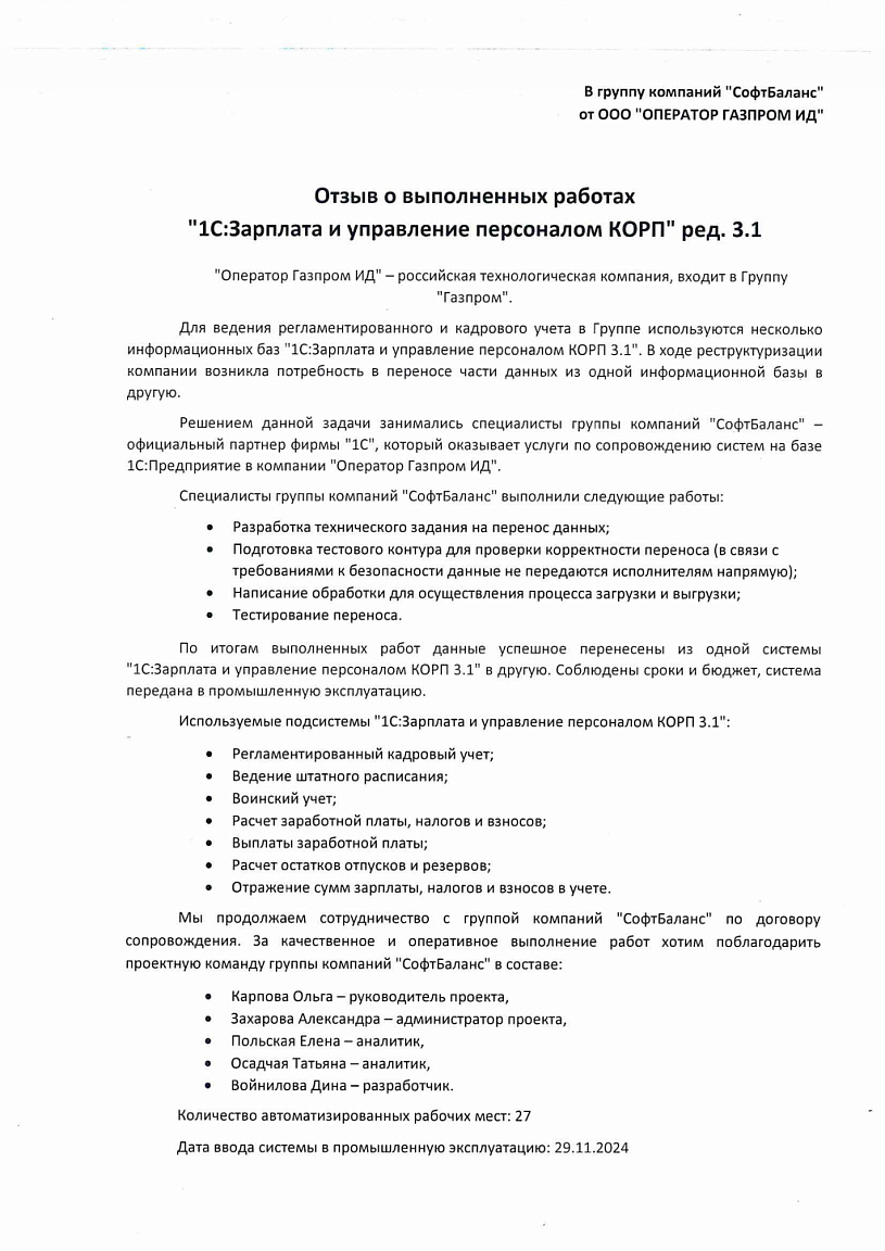 Внедрение 1С Архив в компании "Оператор Газпром ИД"
