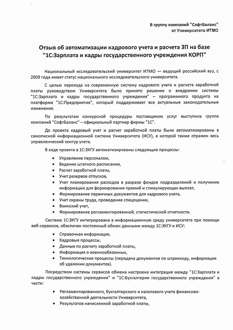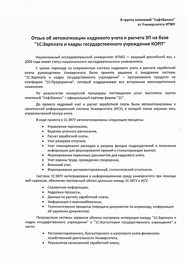 В системе "1С:Зарплата и кадры государственного учреждения" полностью автоматизирован кадровый учет и расчет заработной платы сотрудников в соответствии с требованиями законодательства и особенностями учета ИТМО.
