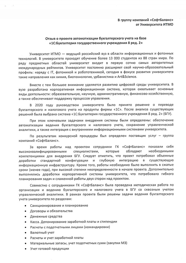 В рамках проекта были решены задачи ведения бухгалтерского учета университета по разделам: