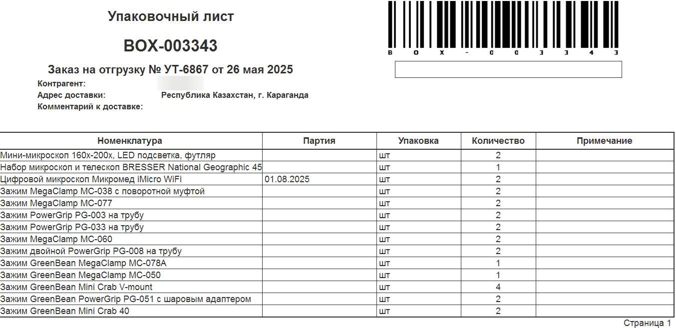 - Доработана этикетка на паллету отгрузки и печатная форма упаковочного листа: