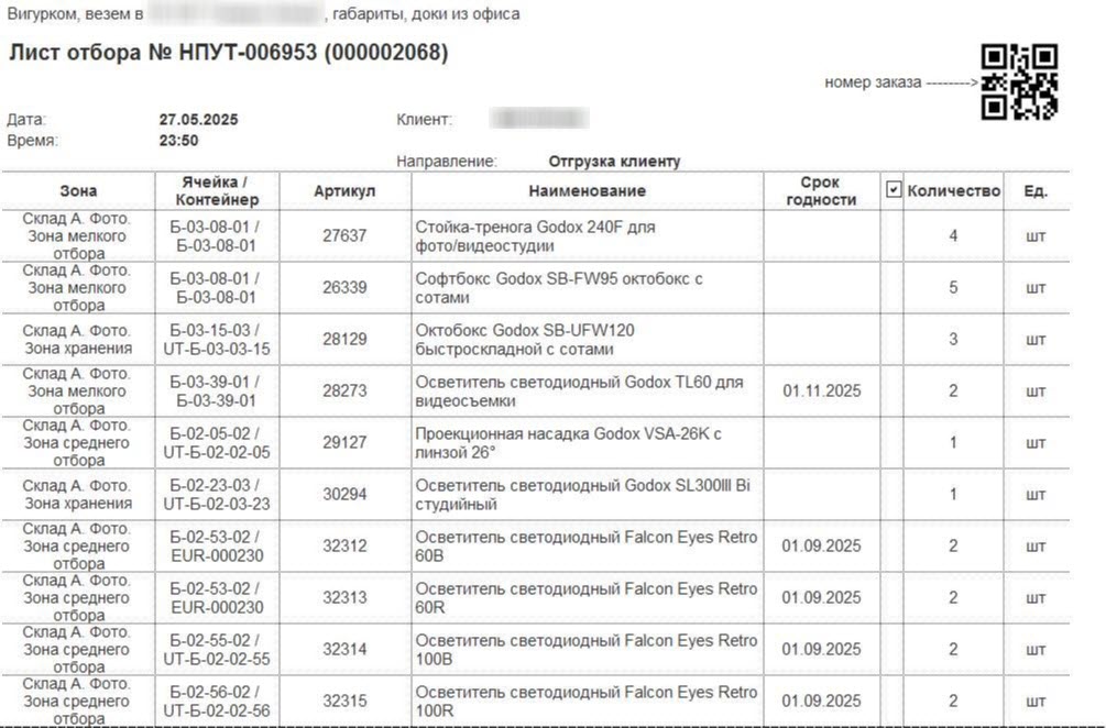 - Контроль количества отобранного товара;