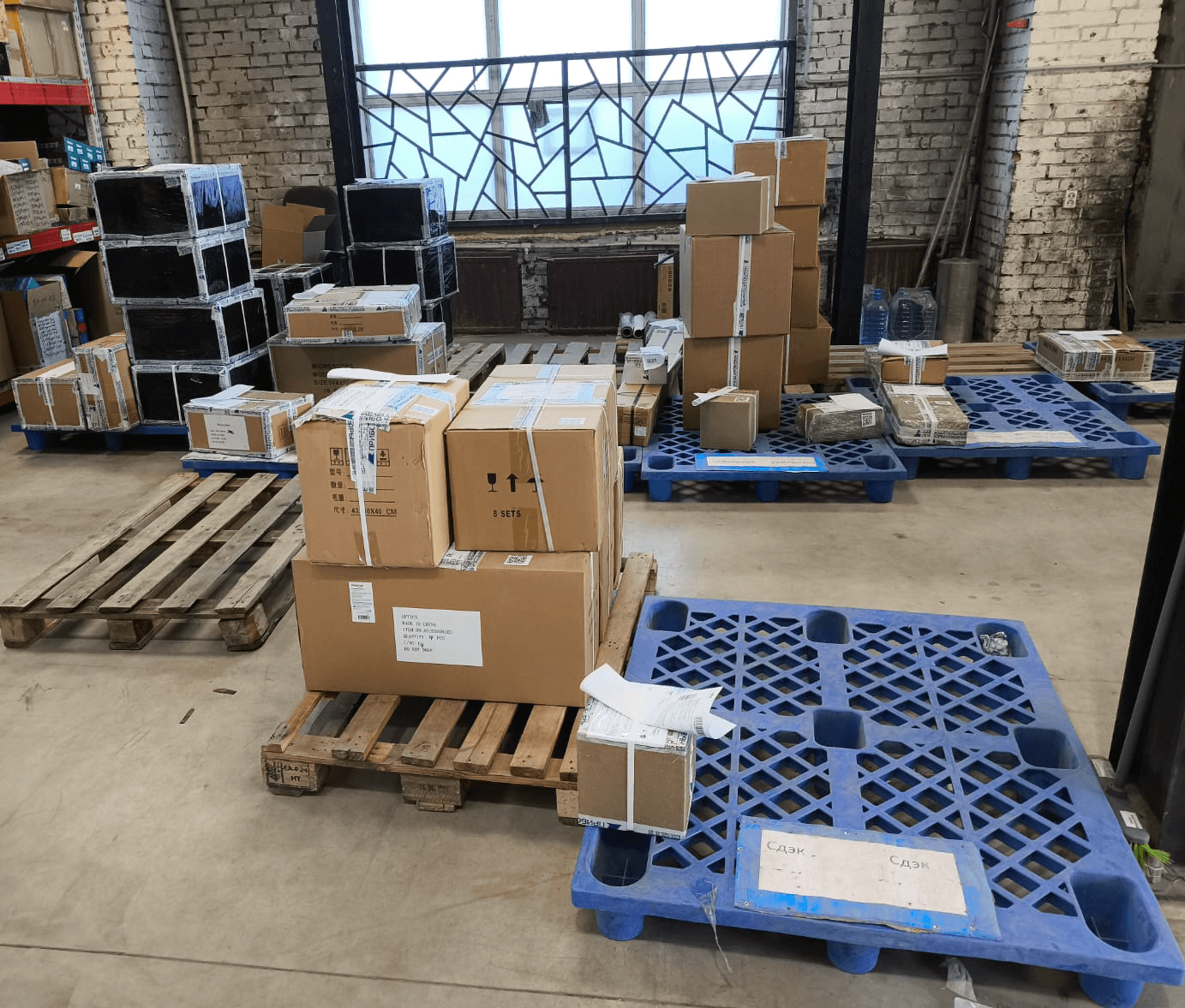 - Контроль и упаковка. Доработанное стационарное рабочее место упаковки, с печатью упаковочных листов и этикеток на паллеты. На этом этапе происходит:
