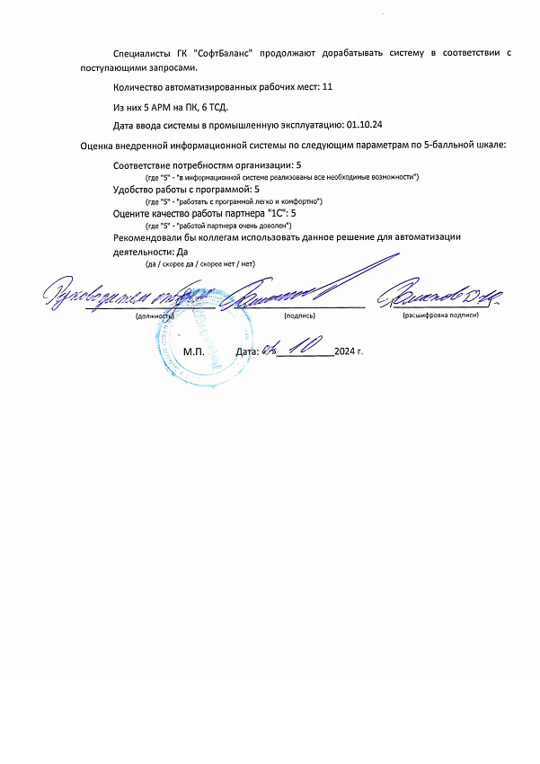 После ввода в эксплуатацию, специалисты ГК СофтБаланс продолжают дорабатывать систему, в соответствии с поступающими запросами от Заказчика.