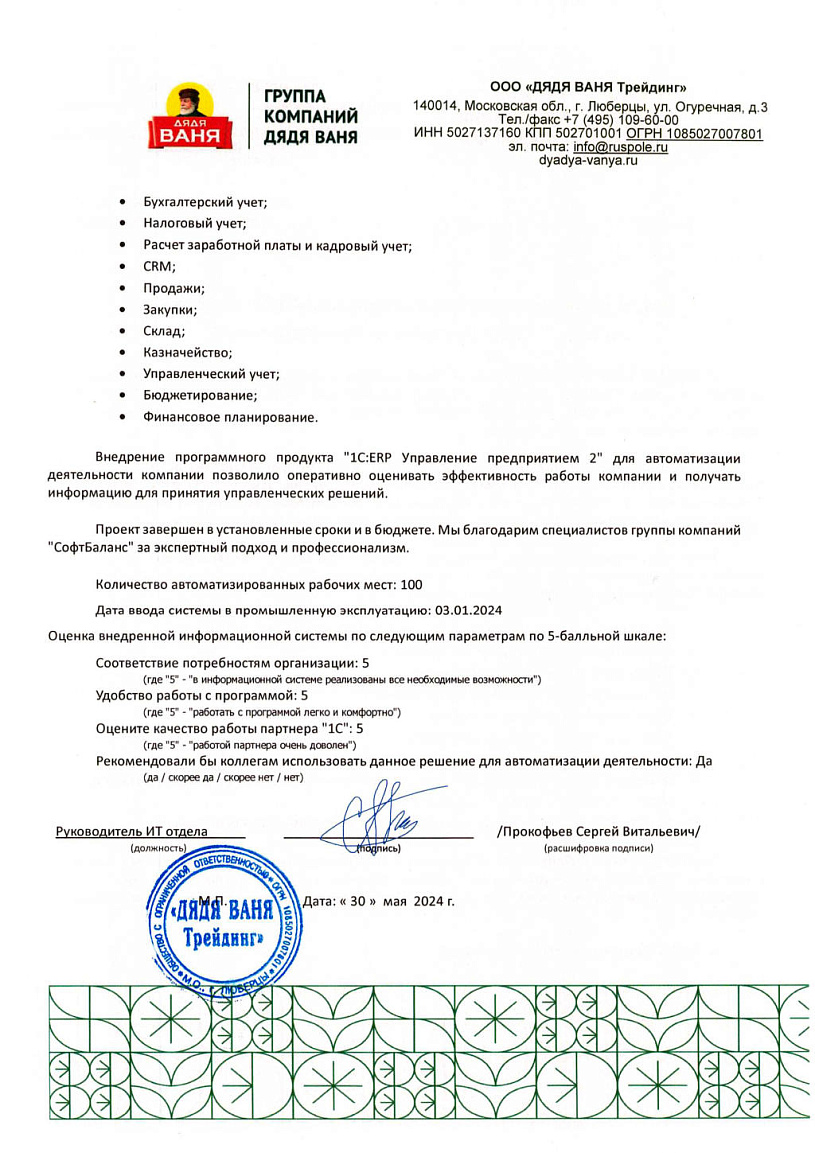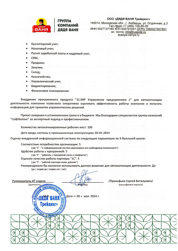 - Внедрение 1С