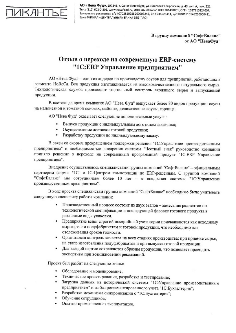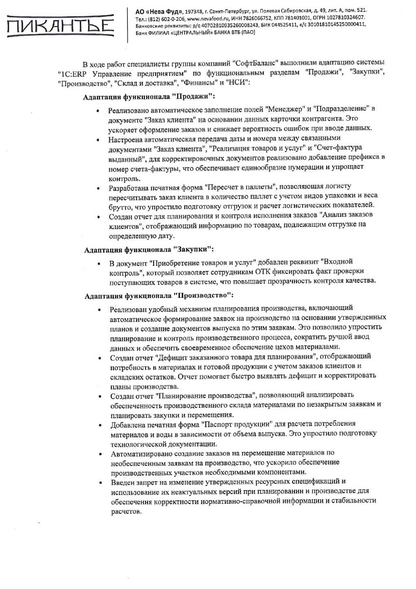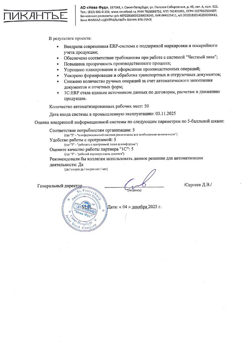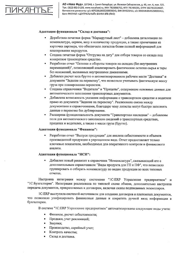 Внедрение 1С ERP в компании "Нева Фуд" – переход с 1С УПП