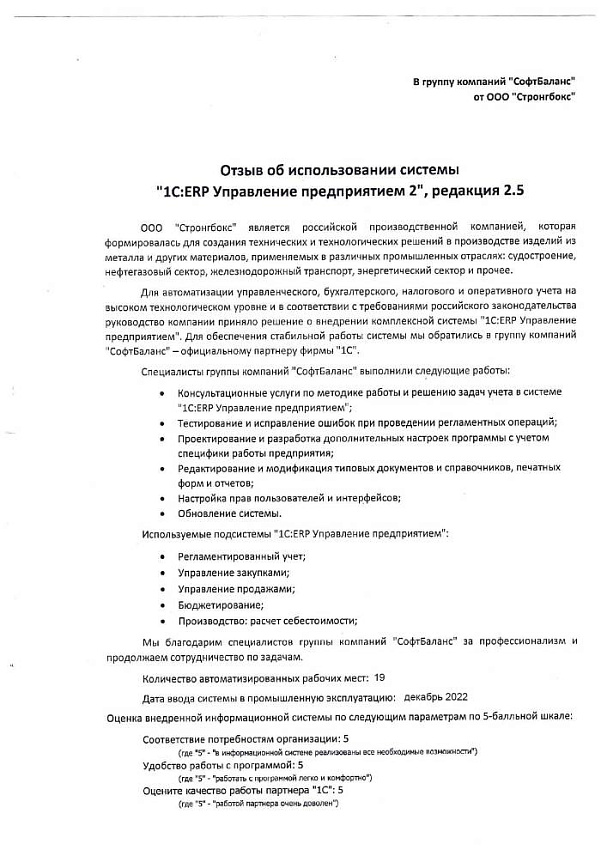 Внедрение 1С ERP в компании "Стронгбокс"