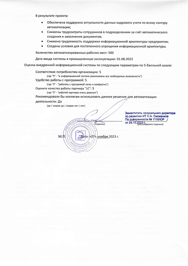 • Снижены трудозатраты сотрудников в подразделениях за счёт автоматического создания и заполнения документов;