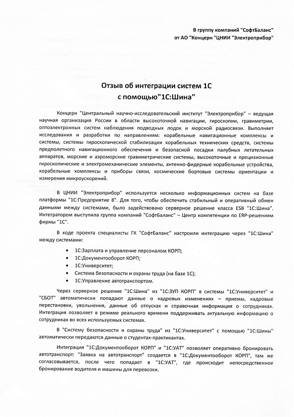 Внедрение 1С:Шина в концерне «ЦНИИ «Электроприбор»
