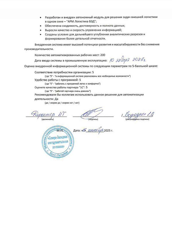 - Внедренная система имеет высокий потенциал развития и масштабируемости без снижения производительности.