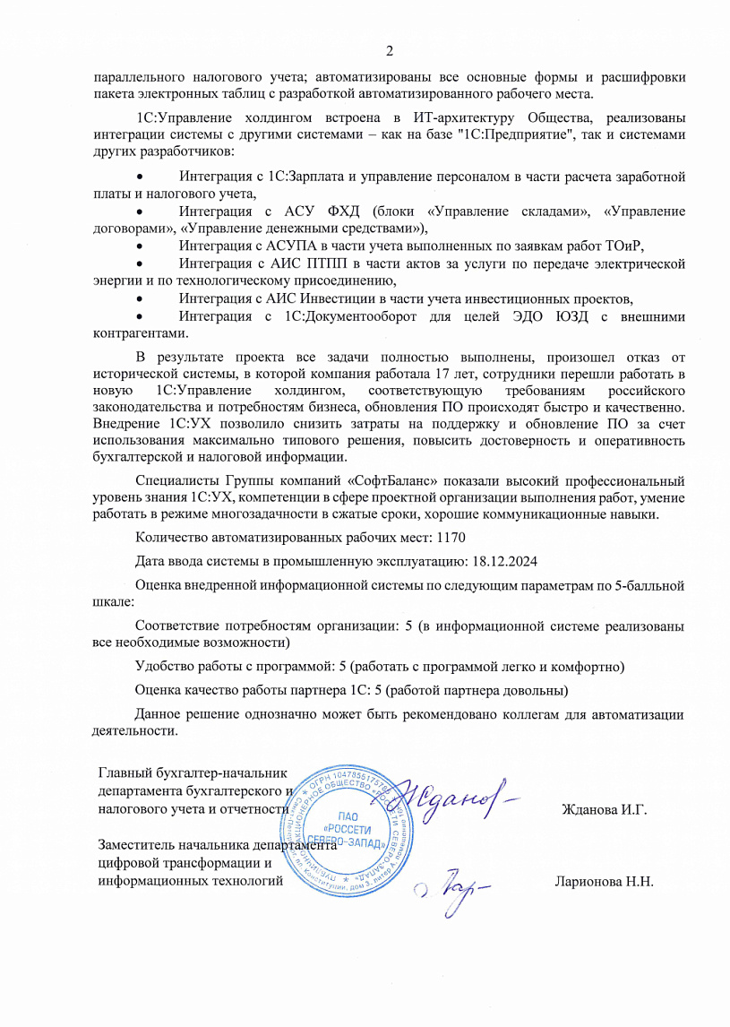 "1С:Управление холдингом" встроена в ИТ-архитектуру заказчика, реализованы интеграции системы с другими системами — как на базе "1С:Предприятие", так и системами других разработчиков: