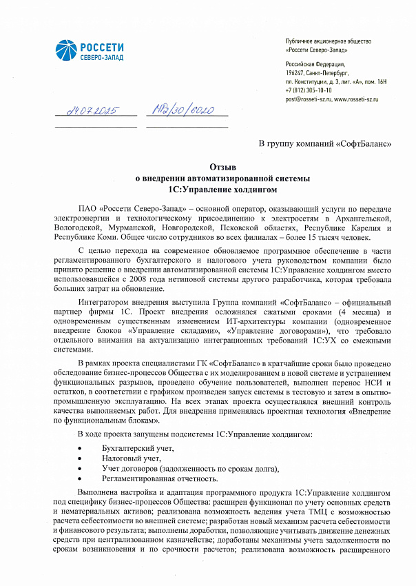 В рамках проекта специалистами группы компаний "СофтБаланс" в кратчайшие сроки было проведено: