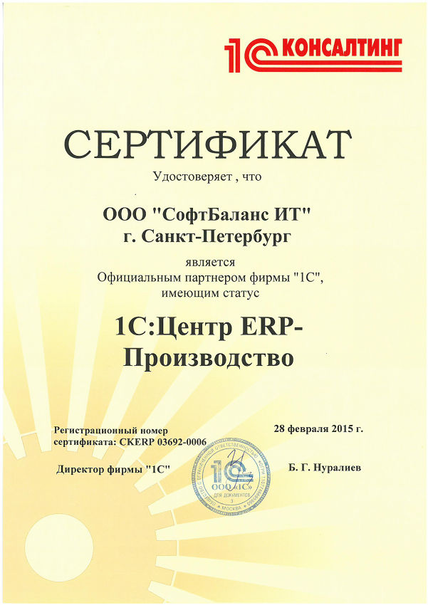 Статус 1С:Центр-ERP производство означает наличие подтвержденного опыта внедрений ERP-систем в производственной отрасли и знаний специфических возможностей решений 1С для данной отрасли.