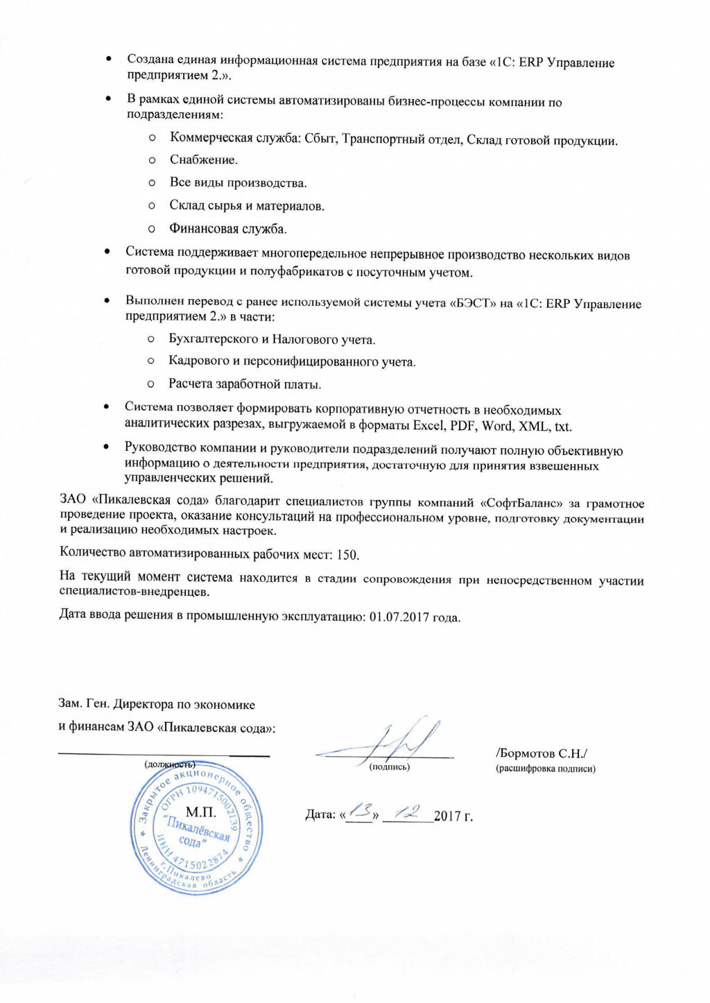 - Внедренные проекты